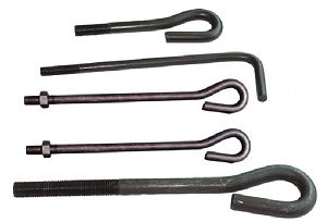 4) 常用的死地腳螺栓頭部制成開(kāi)叉式或帶鉤的形狀,如鉤中穿一橫桿,防止旋轉(zhuǎn)或拔出。