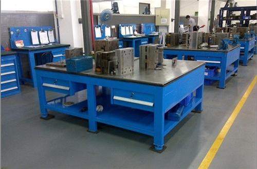 鉗工工作臺用安裝臺虎鉗,放置工具和工件等,其高度約為800到900毫米,以方便工作。正面的掛圖架可放置裝配圖及零件圖。桌內(nèi)可定制擺放常用工具。配有照明燈具。